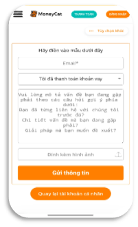 Hãy thường xuyên kiểm tra điện thoại nếu cần nhân viên của Moneycat sẽ liên hệ để hỗ trợ quý khách hoàn tất việc xét duyệt.